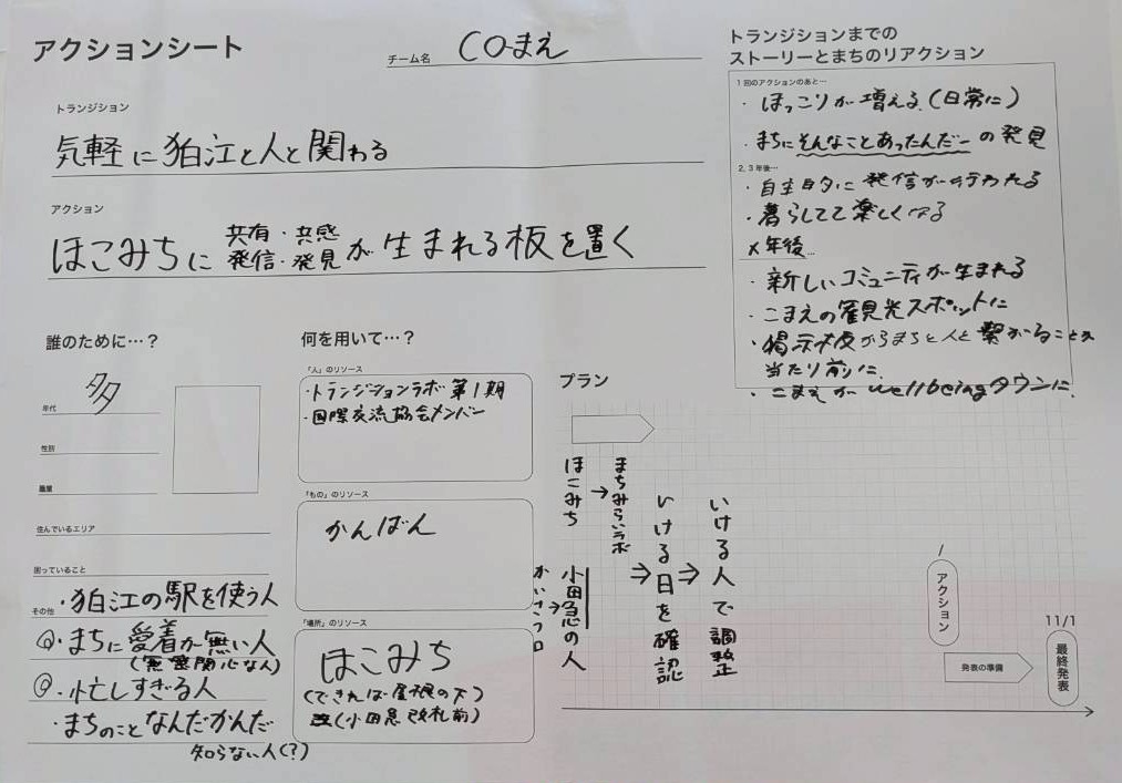 今回のアクションのねらいや、まちのトランジションに向けたストーリーをまとめています。