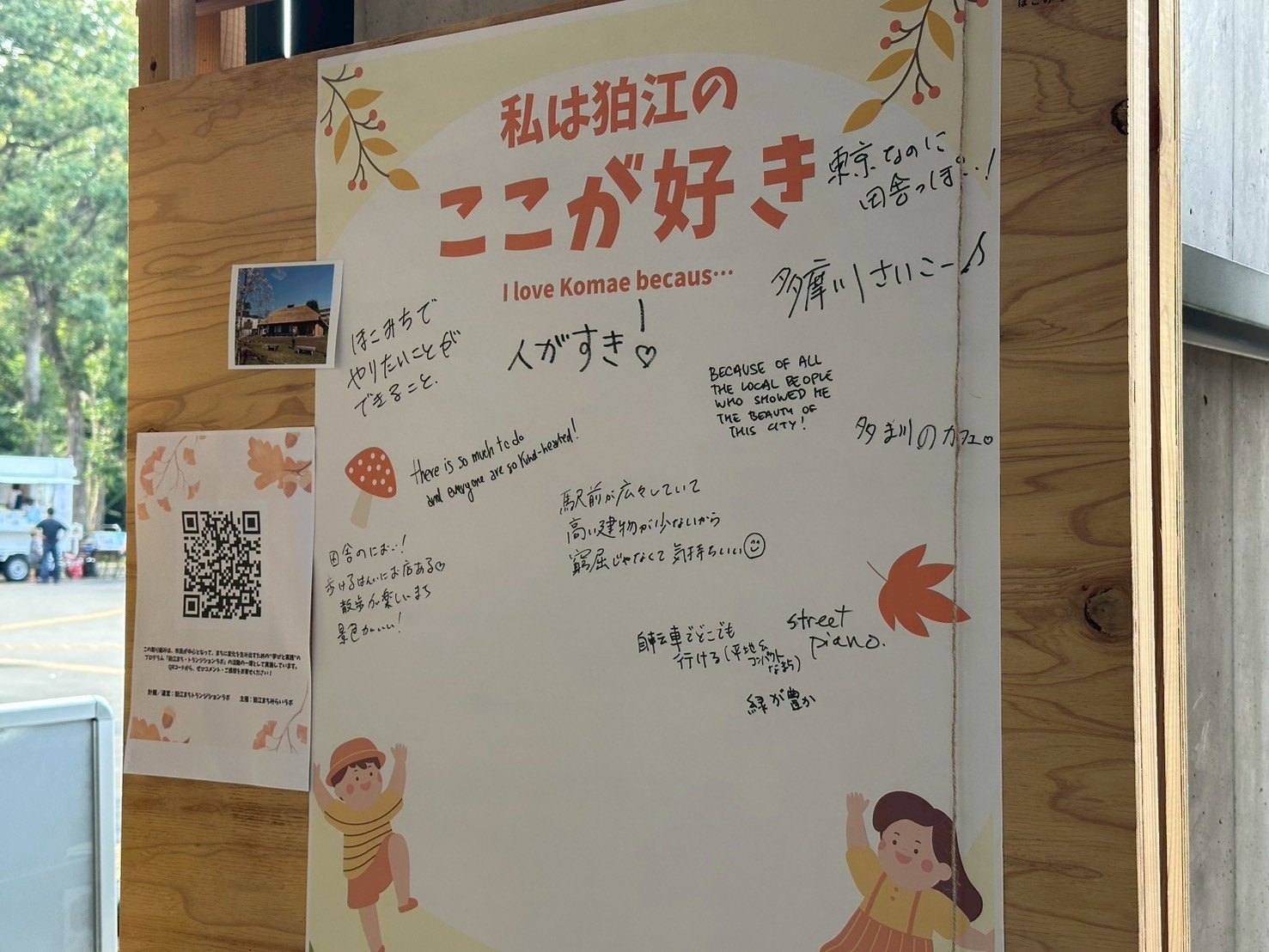 狛江駅を使う人や忙しくてまちに無関心な人、何だかんだでまちのことをよく知らない人が、駅前に置いてある伝言板を見る&書くことで、日常にほっこりが増えたり、新しいまちの発見に繋がります。