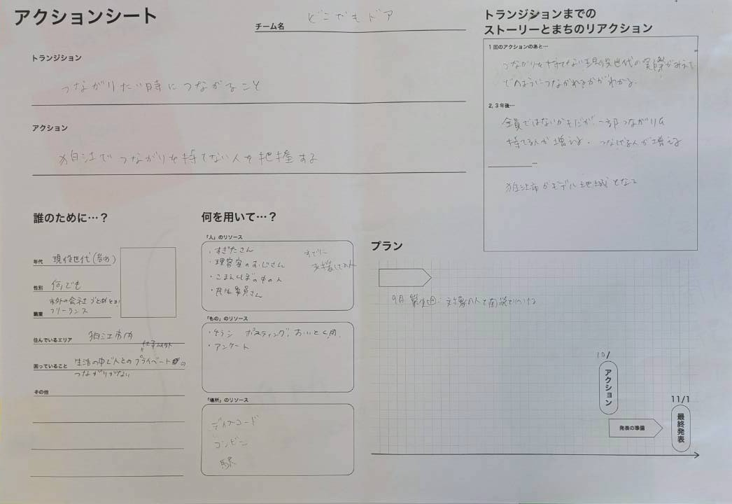 今回のアクションのねらいや、まちのトランジションに向けたストーリーをまとめています。